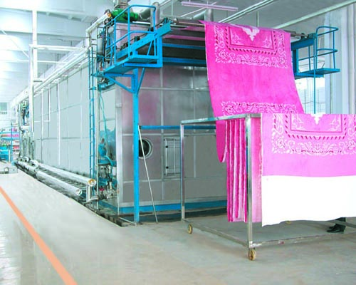 This machine is used for steaming and fixing of blankets, towels, coral fleece fabrics, and cotton, polyester, blended fabrics and other fabrics after printing.